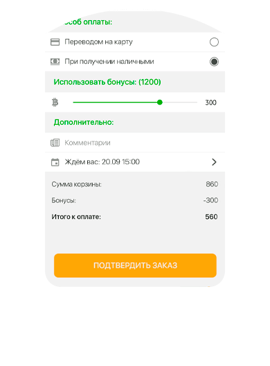 Наша платформа позволяет настроить индивидуальную систему бонусов и автоматически начисляйте средства на счет ваших клиентов по заданным условиям. Есть возможность создать уровни скидок - дайте постоянным клиентам лучшие условия. Генерация дисконтных карт прямо в приложении позволит отказаться от необходимости использовать пластик!
